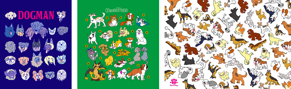 それでも飼わせてもらえない。すると気持ちはだんだん「実際に犬を飼うこと」から「本や絵の中で犬を追いかけること」へと変わっていきました。漫画やアニメの表現も参考にしながら、空想の犬を描いて、描いて、描き続ける。図鑑を真似するだけでなく、性格やしぐさまで表現したいと思うようになって、犬の絵を描けば描くほど、存在はしていないけれど自分が1番犬の近くにいられるような感覚で。のちにNext1Dogsのコンセプトになる「1番遠くで犬を抱きしめたい。」の原点になっていると思います。気がついたら犬のイラストが自分自身の表現手段になっていったんです。登下校の道では、月曜日はシェットランドシープドッグ、火曜日はボーダーコリー、みたいに、犬と一緒に登下校している妄想をしていました。しかも読んでいた行動心理学の本をもとに、ヒールウォークのイメージトレーニングとかをやったりして(笑)