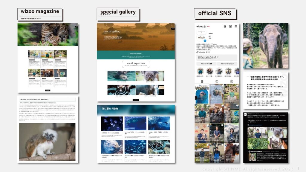 髙野:自社では「日本の動物園水族館探求メディア wizoo」を運営しています。私は小さい頃から動物園や水族館が大好きなのですが、今の動物園や水族館は、ただ楽しい場所だけでなく、社会的に重要な使命を担う存在へと進化しています。動物園・水族館は、個体管理が可能であることから、野生動物の生態を深く理解するための研究施設となり、その研究成果が野生下の保全に役立つケースも少なくありません。実際、動物園での長期的な保護・繁殖があったからこそ、野生では絶滅してしまった種を再び自然に戻せたという実例も存在し、世界的にも同様の動きが広がっています。wizoo の運営を通じて、私はこうした取り組みや現場に息づく想いを可視化し、人と生きものの距離を縮めるメディアを目指しています。