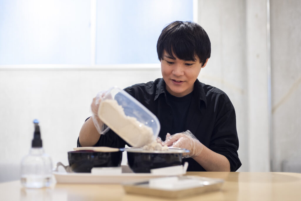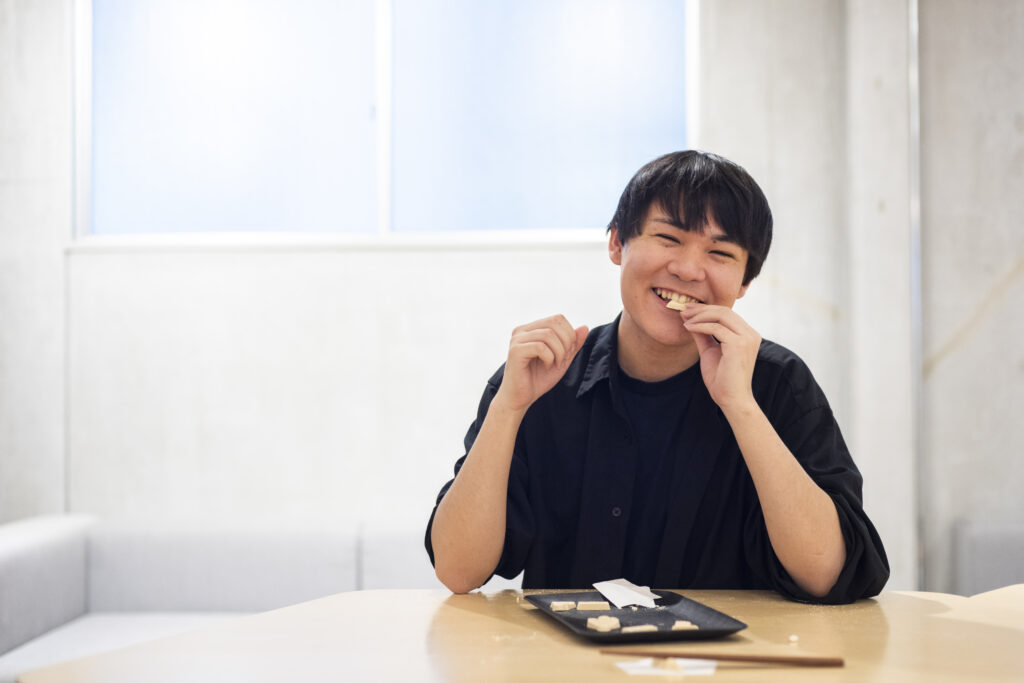 実験的で多岐にわたる活動のどれもに共通しているのは、「誰かに届いてほしい」「話題になってほしい」という、まっすぐな欲。「語られるプロダクトほど、いいものだと思うんです」と語る彼の考えを、和菓子作りを見せてもらいながら聞いてみました。