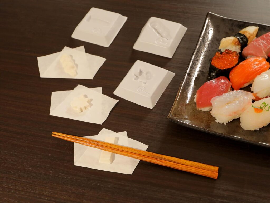 一般社団法人日本ホビー協会主催のJapan Handmade of The Year 2025で東京都知事賞を受賞した『和三置き』。食事中は箸置きとして、食後は和菓子として楽しめる。