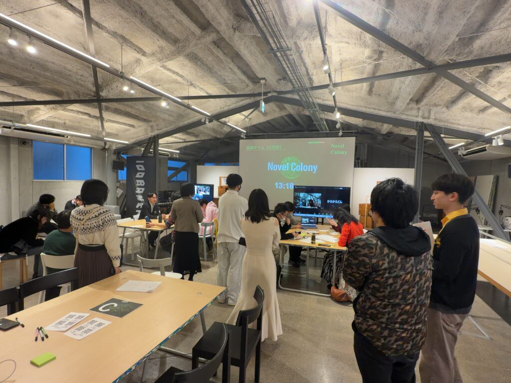 当日は、舞城氏の作品の続きを執筆する「書き手」の方々や、議論に参加する「読み手」が集まり、物語づくりのプロセスをリアルに体験。会場は終始大きな熱気に包まれ、Novel Colonyの新たな第一歩となる盛況のイベントとなりました。その模様を、Novel Colonyの佐々木がレポートします。