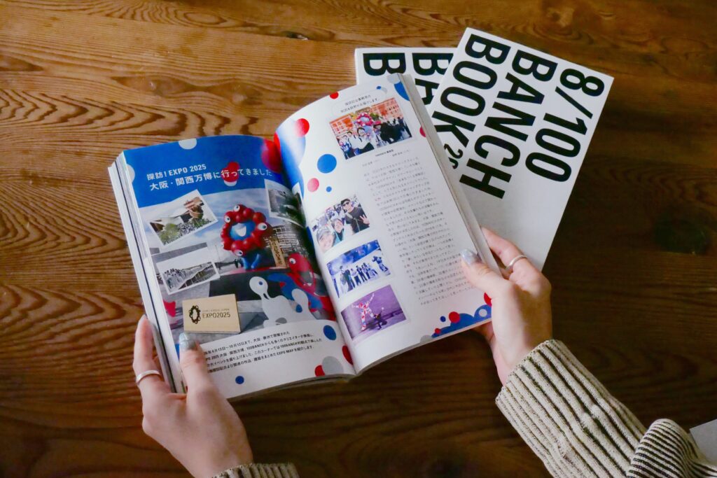 今年のBOOKでは2025年ならではのコンテンツとして大阪・関西万博を取り上げ、100BANCH メンバーが携わった企画やイベントを紹介しました。関連作品に関するマップだけでも数ページにわたる充実ぶり。未来をつくる実験区として誕生した100BANCHにとって、未来社会の期待や可能性を一堂に集めた万博の開催は非常に意義深く、100BANCHから羽ばたいたメンバーの活躍はとても誇らしいものでした。