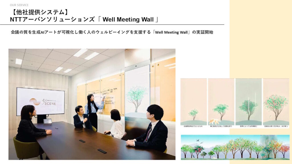加藤:昨今、「ウェルビーイング」がキーワードになる中で、慶應義塾大学との共同研究を通じて、「空間のウェルビーイング」に関する学術的な検討を進めています。一方で、NTTアーバンソリューションズとの取り組みにおいては、会議室のカメラ映像から参加者の活性度を分析し、行動変容を促すホワイトボードシステムの開発・実装プロジェクトを推進しています。このように、学術研究と実装プロジェクトの両輪で取り組むことで、「建築の民主化」というビジョンの実現に向けた知見と社会実装の双方を加速させていきたいと考えています。