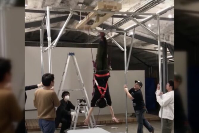 左)100BANCHプロジェクトである「Omoracy」のVRバンジーの実験。さまざまな実験が日夜問わず行われています。