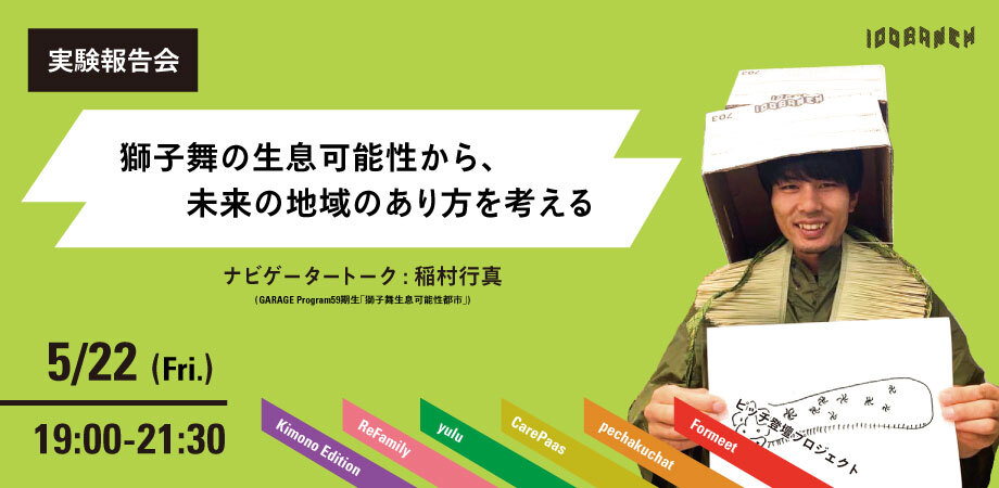 今回は、全国各地の獅子舞文化をリサーチし、獅子舞にとっての暮らしやすさから未来の地域のあり方を研究し続けているGARAGE Program59期生「獅子舞生息可能性都市」の稲村行真(獅子舞研究家)をナビゲーターとし、GARAGE Programを終了したプロジェクトが活動を報告します。