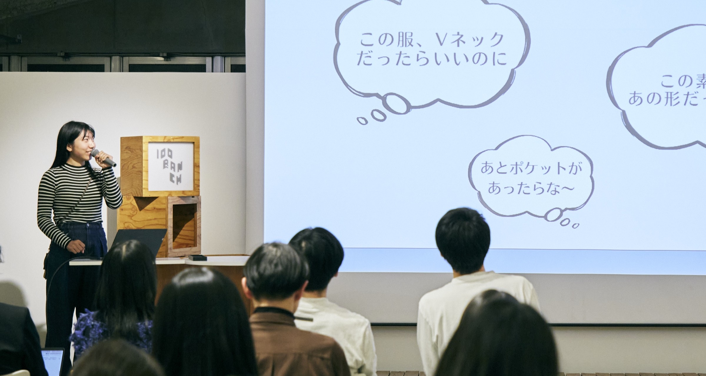 黒川:「この服、Vネックだったらいいのに。」「この素材であの形だったら。」皆さんもこんな経験はありませんか。服を探しているときに、「袖はこの形がいい」「腰はこの形がいい」と思える服は見つかるのに、全てが理想通りのものはなかなか見つかりません。私は、欲しい服が頭の中にはあるのに実際にはなかなか見つからない、という状況にモヤモヤを抱いていました。これを解決するためのプロジェクトが「TailorYou」です。欲しい服がある人と、服をつくれる人をつないで、既存の服を理想に近づけるリメイクすることを「TailorYouする」と呼び、これが気軽にできる世界をつくろうとしています。