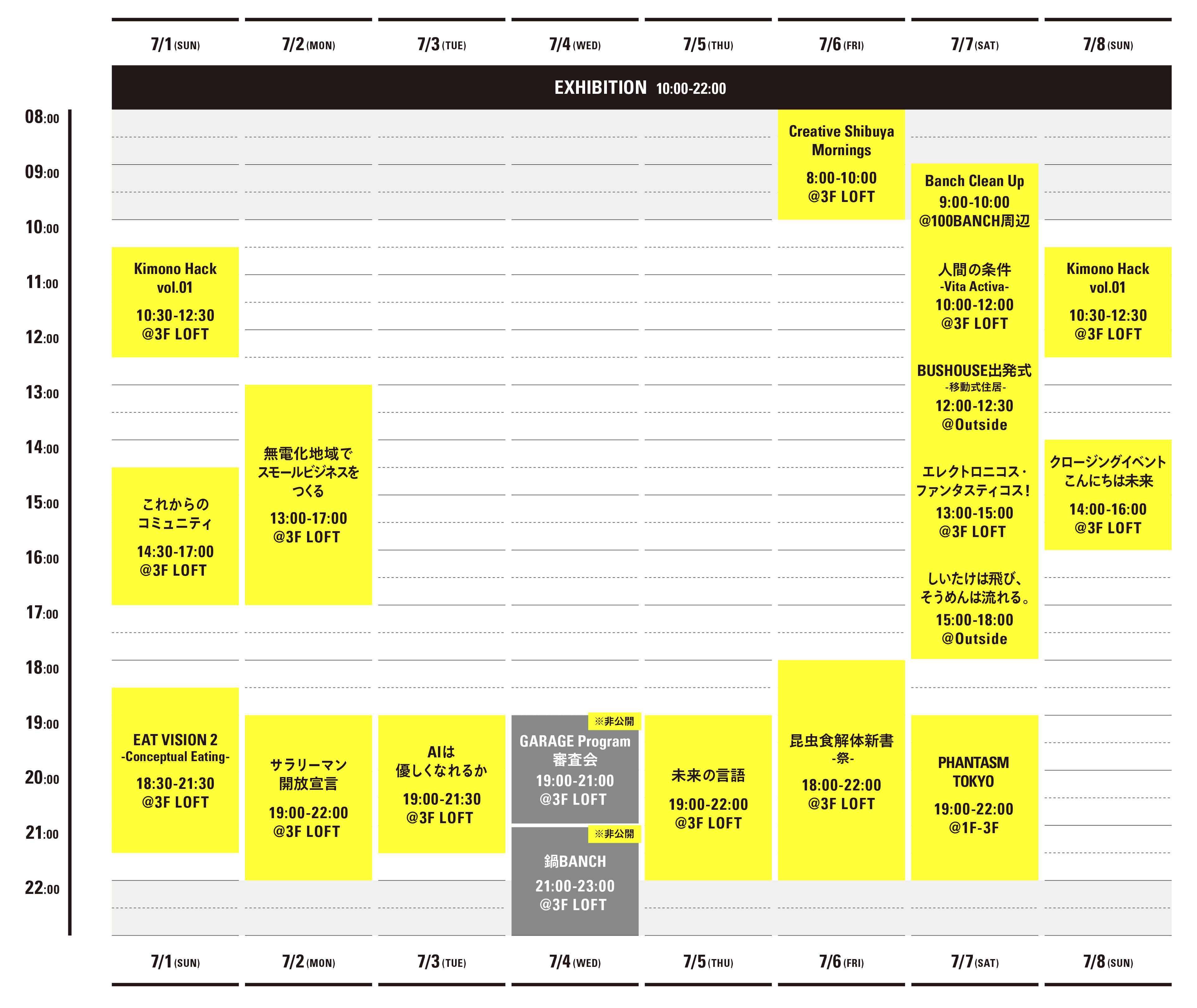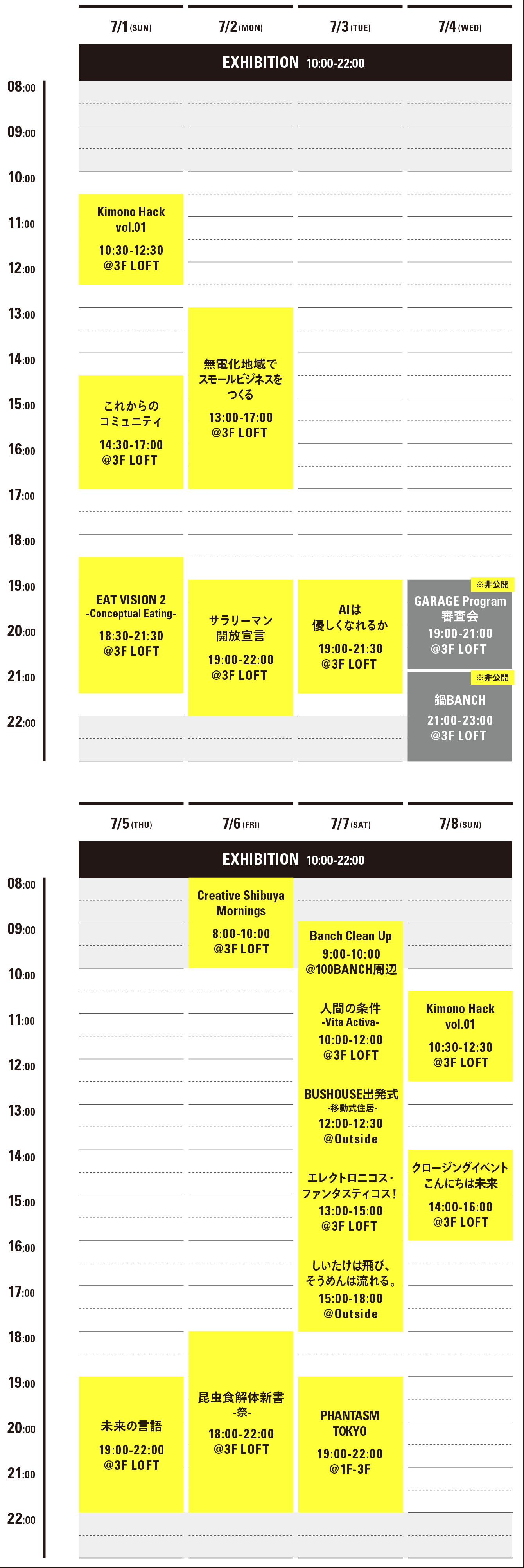 - 3F LOFT イベント時間:各イベントの詳細をご覧ください