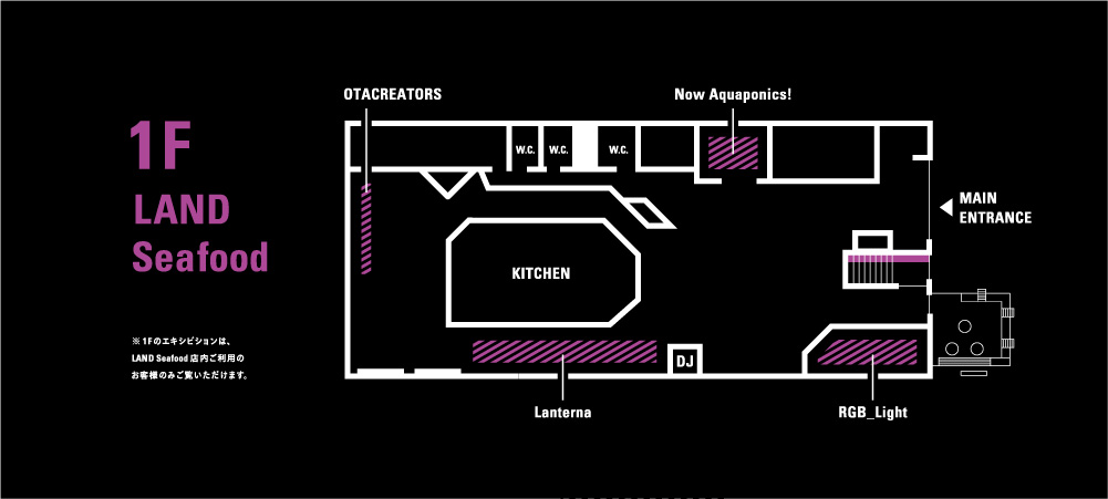 ※1F LAND Seafood内は11:00 – 23:00、最終日は17:00頃に全フロア展示終了